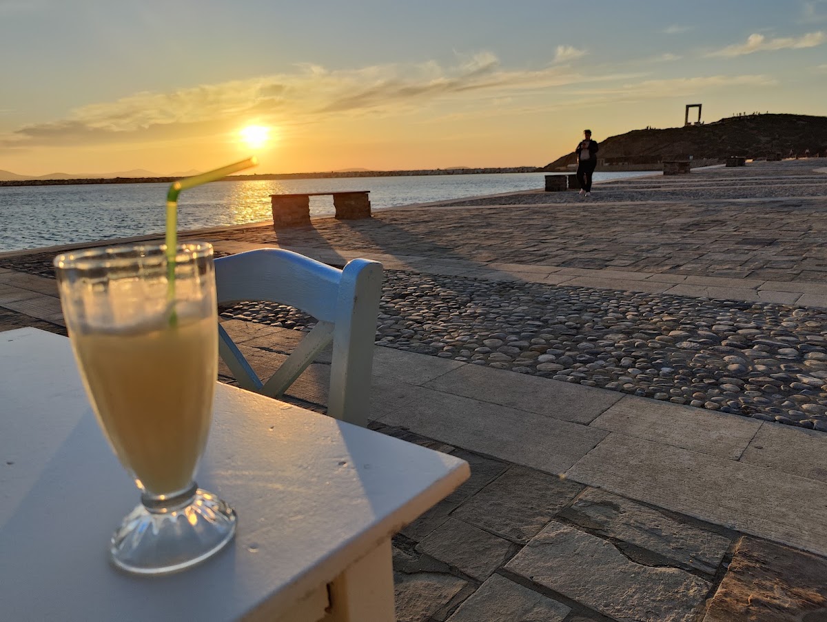 If you find yourself wandering the stunning shores of Naxos, a visit to Escape Cafe is an absolute must. Nestled along Leoforos Paraliaki, this charming cafe is perfectly positioned to offer breathtaking views of the iconic Portara and the serene chapel of Panagia Myrtidiotissa. The ambiance encapsulates the serene yet vibrant spirit of the island, making it an ideal spot to unwind with a refreshing drink in hand.